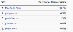 viralnova.com 的流量來源有60.7%來自Facebook, 只有4.9%來自GOOGLE(GOOGLE收錄只有大概9000個頁面),估計還有30%是用戶直接輸入網址的。